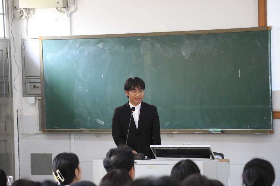 (图为第八届团委、学生会社会实践部副部长滕志坤发言)