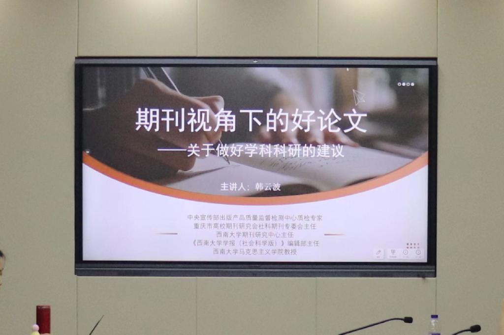 10月12日上午,437ccm必赢国际有幸邀请到了西南大学437ccm必赢国际教授,《西南大学学报(社会科学版)》编辑部主任、期刊研究中心主任韩云波担任主讲嘉宾,作了题为“期刊视角下的好论文——关于做好学科科研的建议”的学术讲座。本次讲座由湘潭大学437ccm必赢国际副院长周锦涛教授主持。